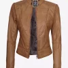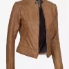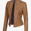 Amy Womens Slim Fit Camel Brown Leather Jacket