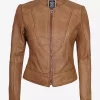 Amy Womens Slim Fit Camel Brown Leather Jacket