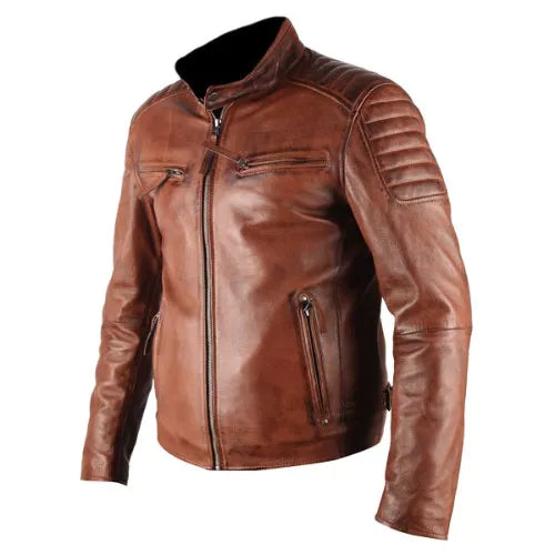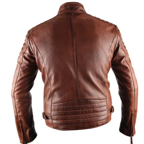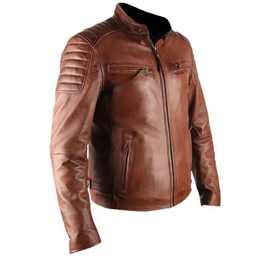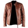 ATX 3 Cross Pockets Brown Waxed Genuine Real Leather Jacket