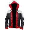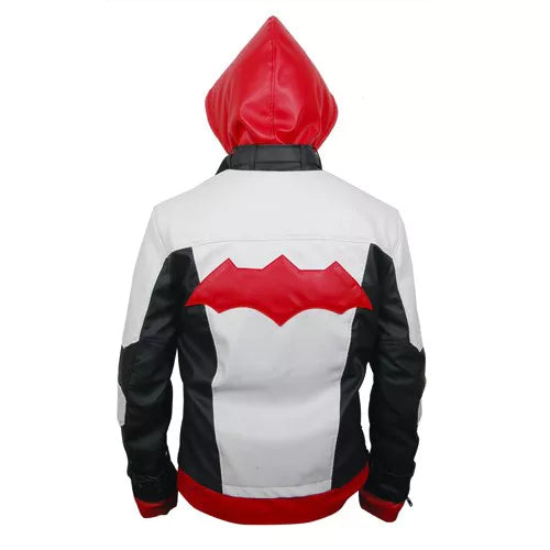 The Batman Arkham Knight Red Jacket, inspired by the game’s Jason Todd character, is a bold and stylish choice for your wardrobe. Crafted from premium faux or sheepskin leather with a soft viscose lining, it offers comfort and durability. Featuring a striking red-and-white color scheme, a detachable red hood, a buckle collar, dual zipper pockets, and a bat logo on the back, this jacket combines heroic flair with modern design. Perfect for upgrading your style!