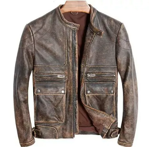 Cafe Racer Vintage Distressed Brown Leather Jacket
