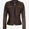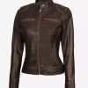 Dodge Women’s Dark Brown Cafe Racer Leather Jacket