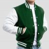 Kelly Green Wool Varsity Jacket with Bright White Leather Sleeves