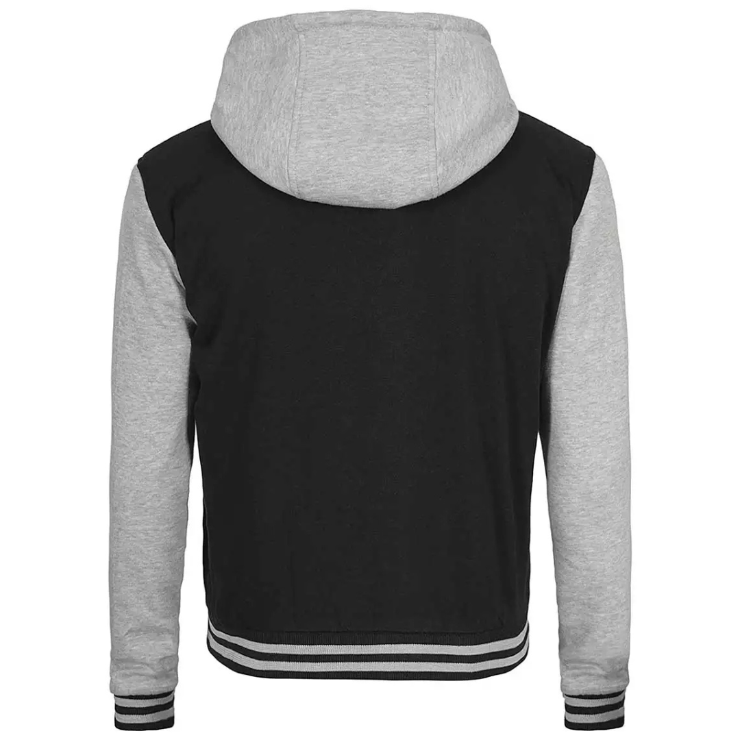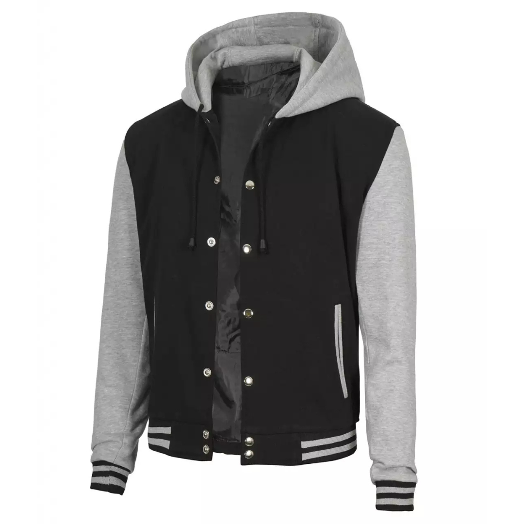 Men’s Black and Grey Hooded Varsity Jacket – Stylish & Comfortable Outerwear