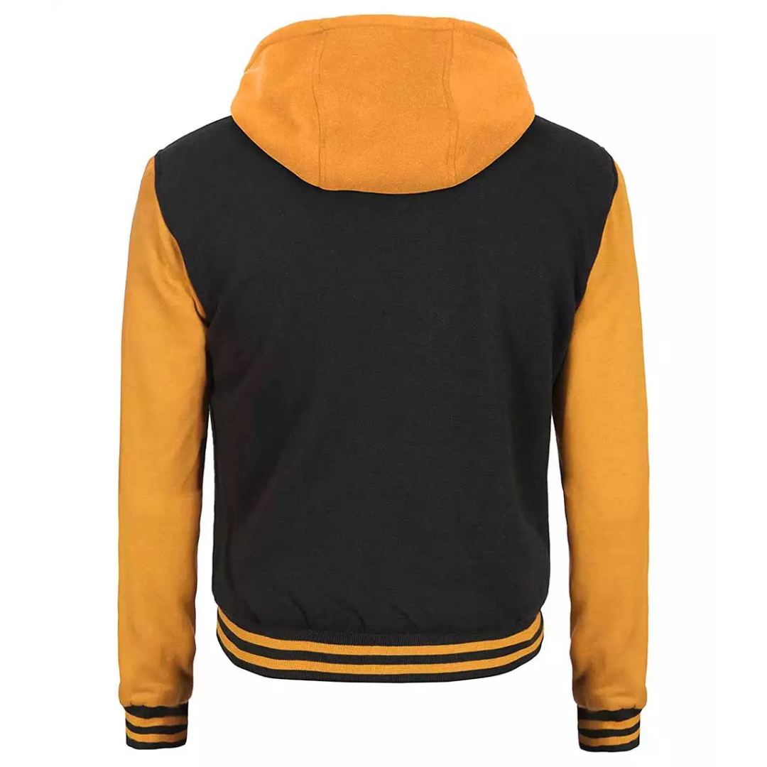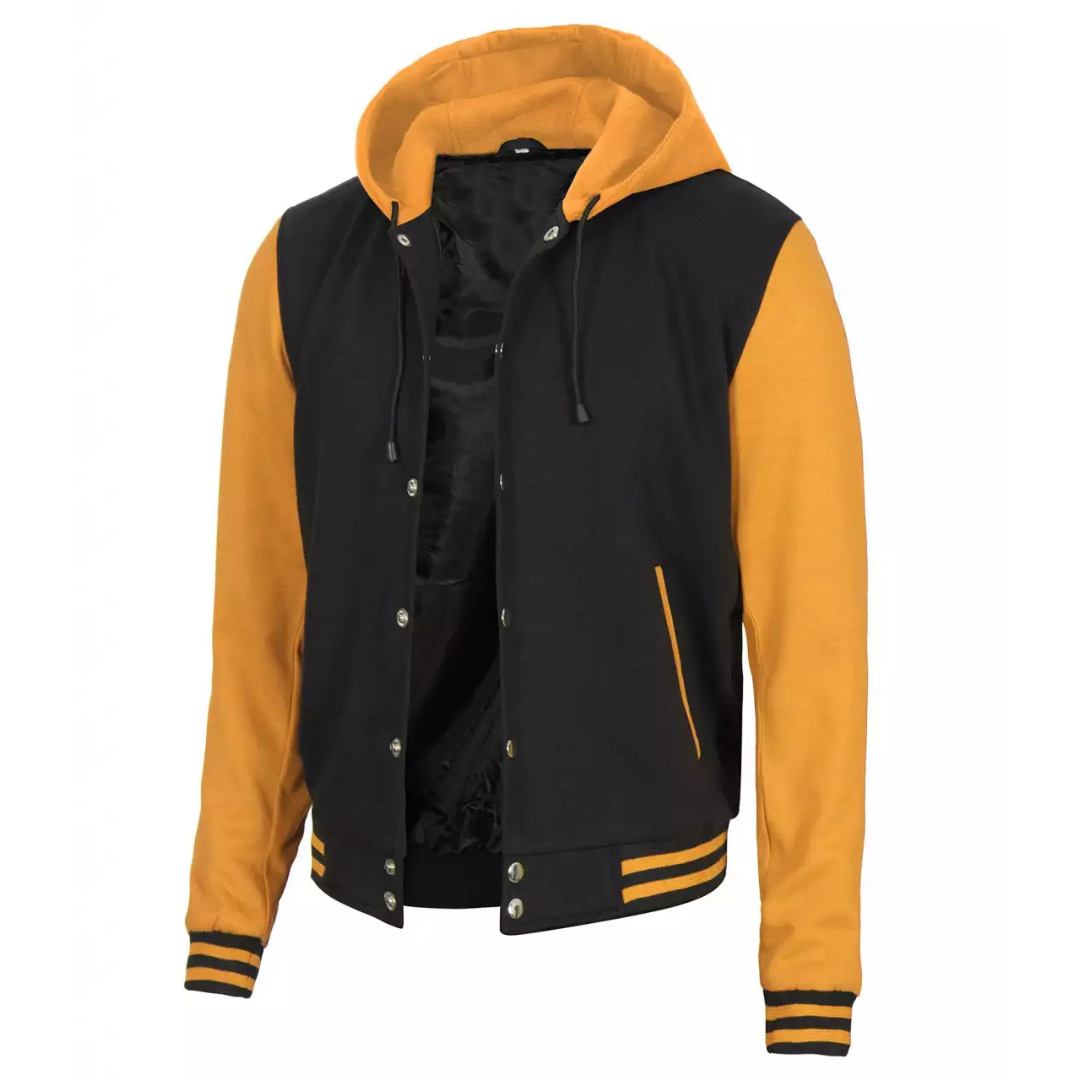 Mens Black And Yellow Letterman Varsity Jacket with Hood