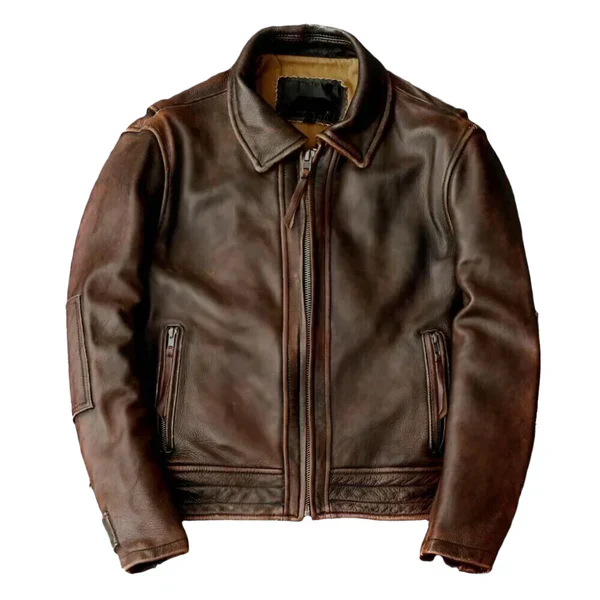 A classic item, the Men’s Brown Vintage Biker Genuine Leather Jacket captures the tough essence of vintage motorcycle culture. Crafted from fine genuine leather, this jacket has a rich brown colour that acquires a unique appearance over time, adding character with each wear.It is designed with both style and functionality in mind, with asymmetrical zippers for a striking look, many pockets for convenience, and padded shoulders for enhanced comfort while oozing classic biker flair.