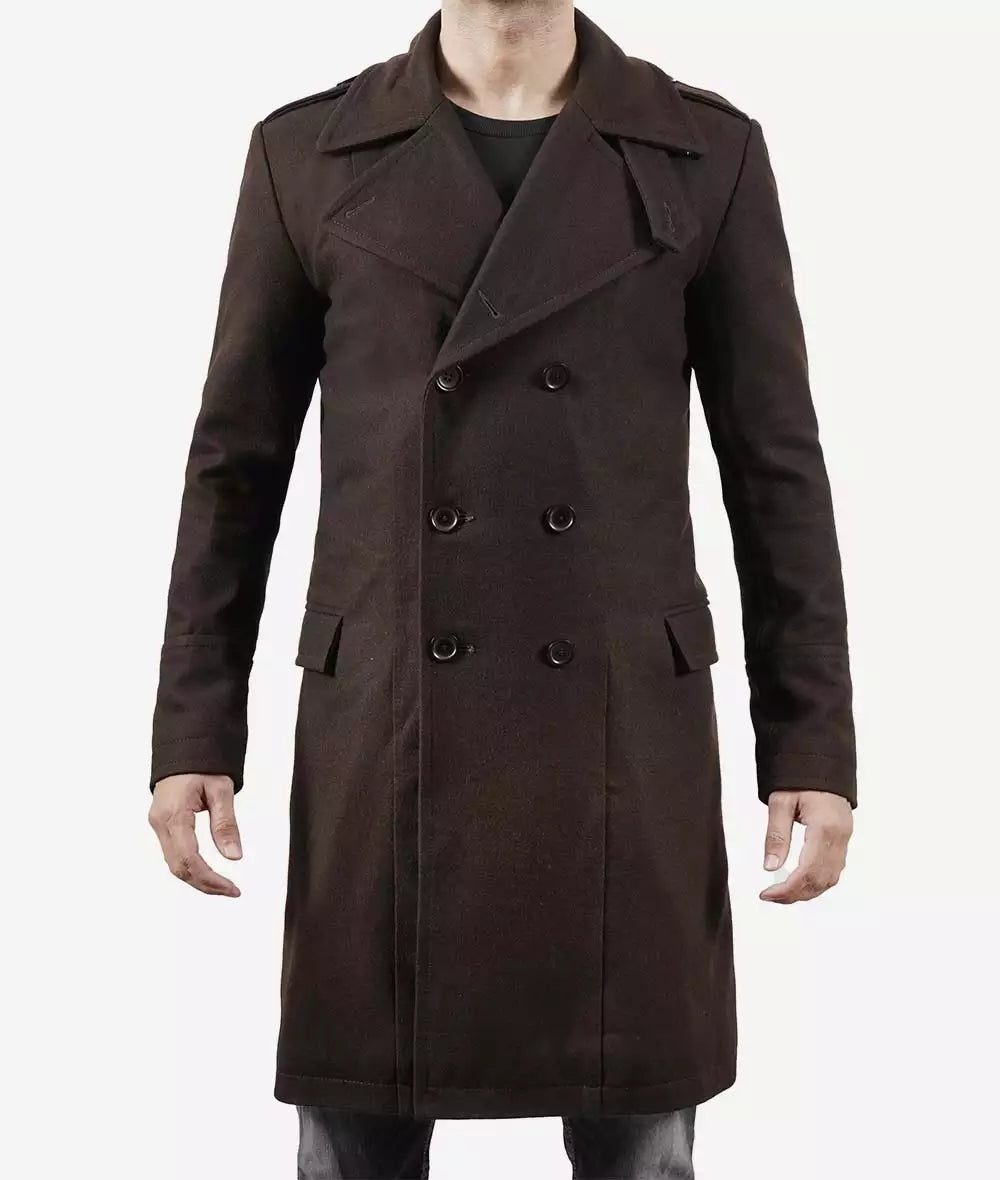 Men’s Chocolate Brown Double-Breasted Wool Coat