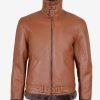 Enhance your look with this Men’s Cognac Leather Shearling Bomber Jacket. This jacket, crafted from superb leather and lined with faux sheepskin, not only provides unparalleled warmth but also exudes a particular moto charm. This garment is ideal for cold journeys or a sophisticated night out, exuding refinement and raw allure. Inspired by Second World War pilot gear.SM
