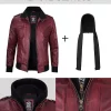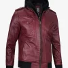 Men’s Maroon Leather Jacket with Removable Hood