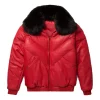 Men’s V-Bomber Faux Shearling Red Leather Jacket