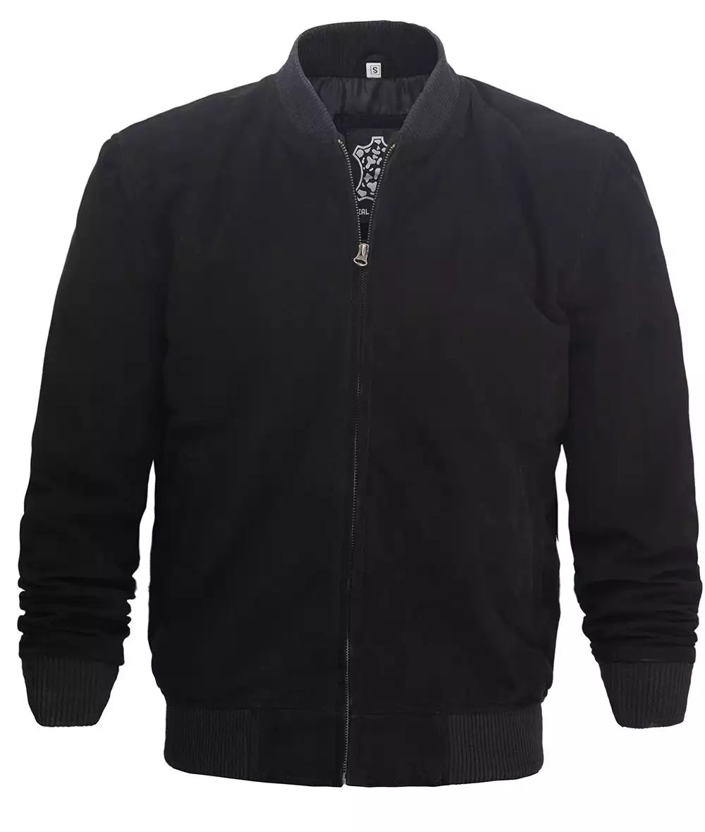 Premium Black Suede Bomber Jacket for Men
