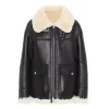 Women’s Black Ivory Aviator Faux Shearling Leather Jacket