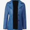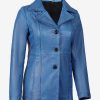 Women’s Blue Waxed Leather Coat | Three Button