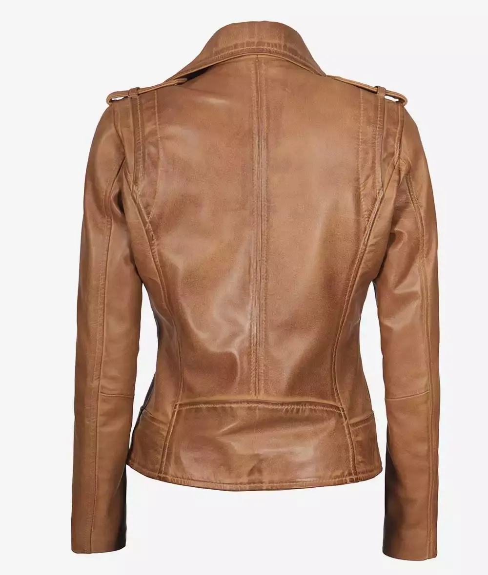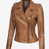 Women’s Camel Brown Real Leather Moto Jacket