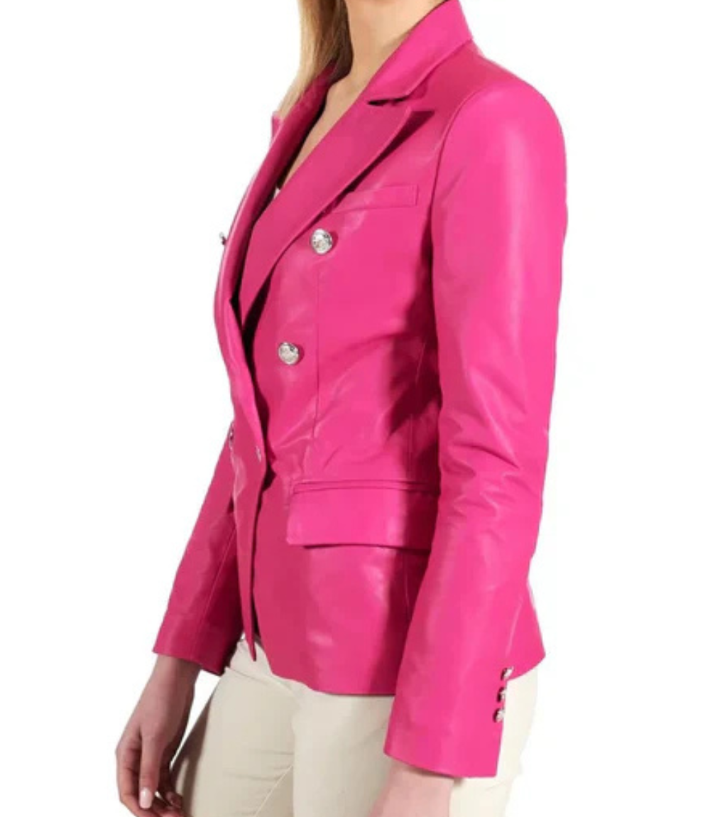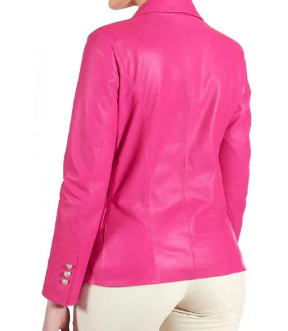 Women’s Pink Double Breasted Leather Coat