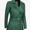 Women’s Green Asymmetrical Moto Belted Leather Jacket