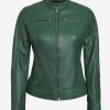 Women’s Green Slim Sit Cafe Racer Leather Jacket