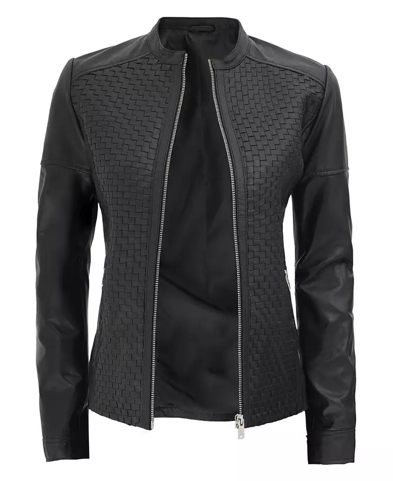 The all-new black textured leather jacket will elevate your casual style. It is composed of high-quality authentic lambskin leather and has a comfortable polyester lining. A mandarin collar, zip closure, two outer pockets, and one deep inside pocket for essentials are among the features.