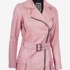 Women’s Pink Belted Moto Real Leather Jacket