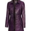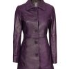 Women’s Purple Button Down Leather Coat
