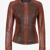 Women’s Textured Brown Leather Cafe Racer Jacket